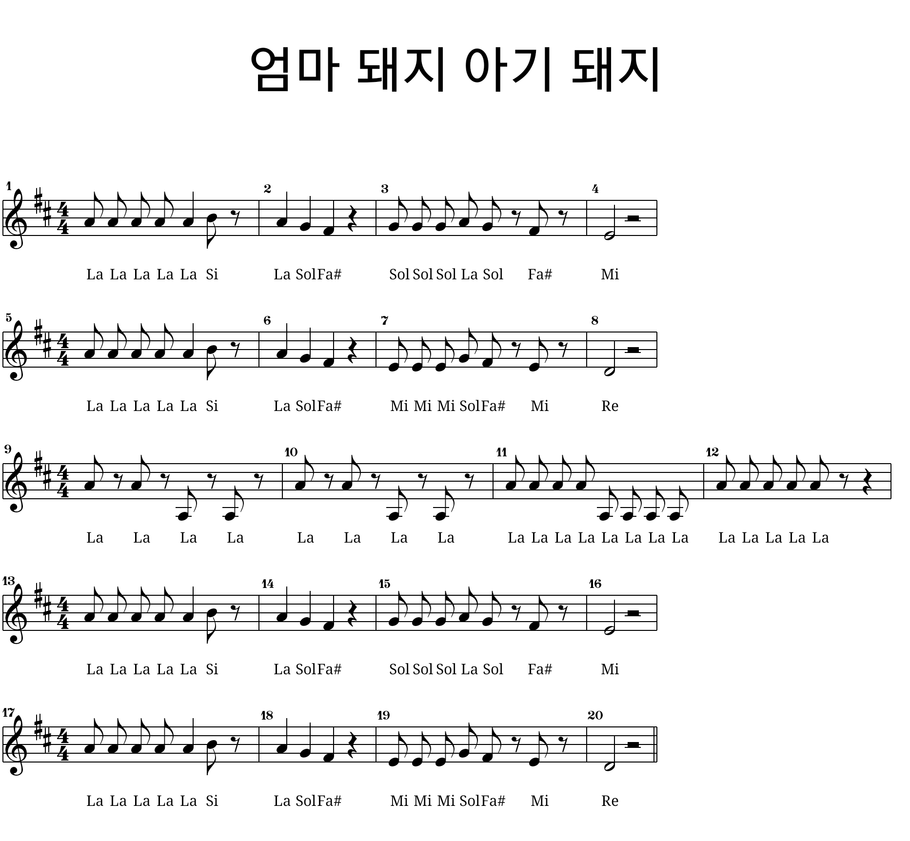 // ---------------------------------------------------------------------- 동요: 엄마 돼지 아기 돼지