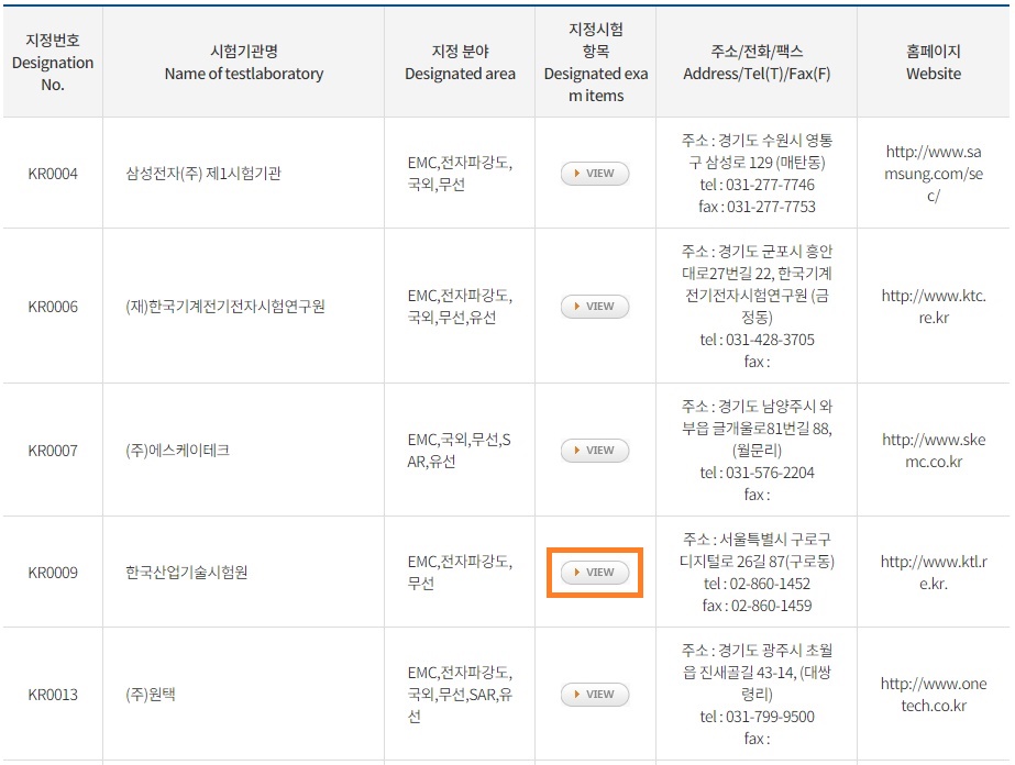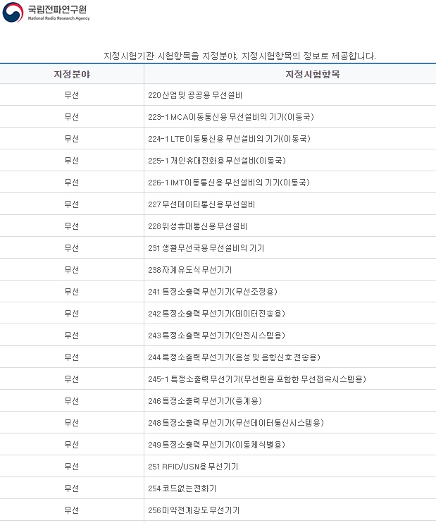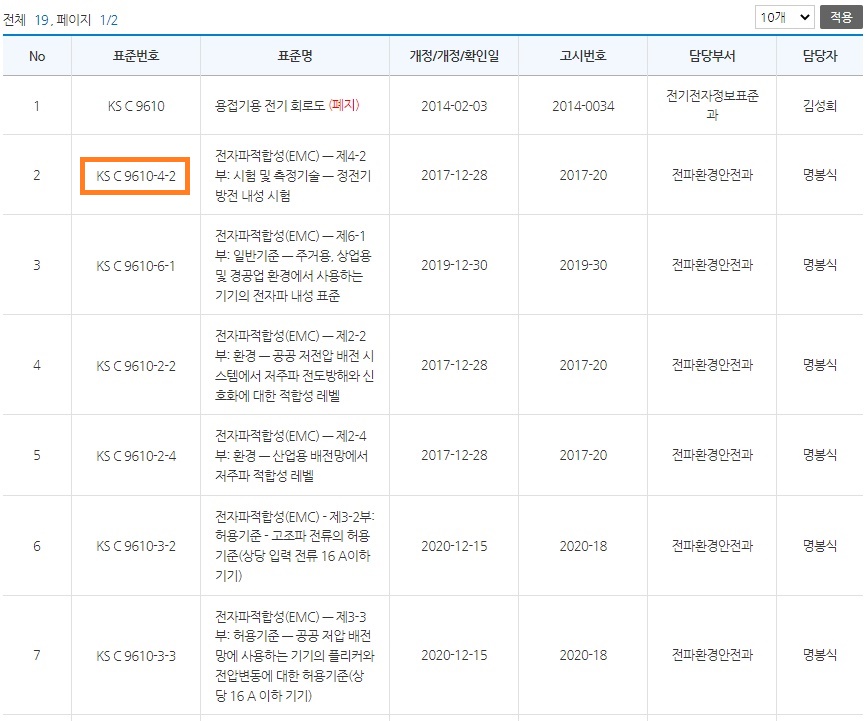 * 시험방법 "KN *****"형식 번호와 "KS X *****"형식 번호는 국립전파연구원 홈페이지에서 검색하고 "KS C *****"형식 번호는 국가표준인증 통합정보시스템에서 검색