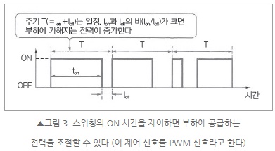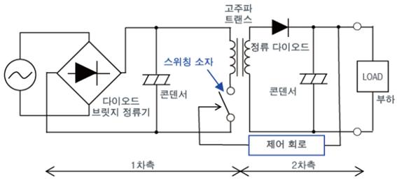 ON-OFF를 반복하는 것으로 인해 노이즈(전자파)가 발생하지만 소형 및 경량화할 수 있다.