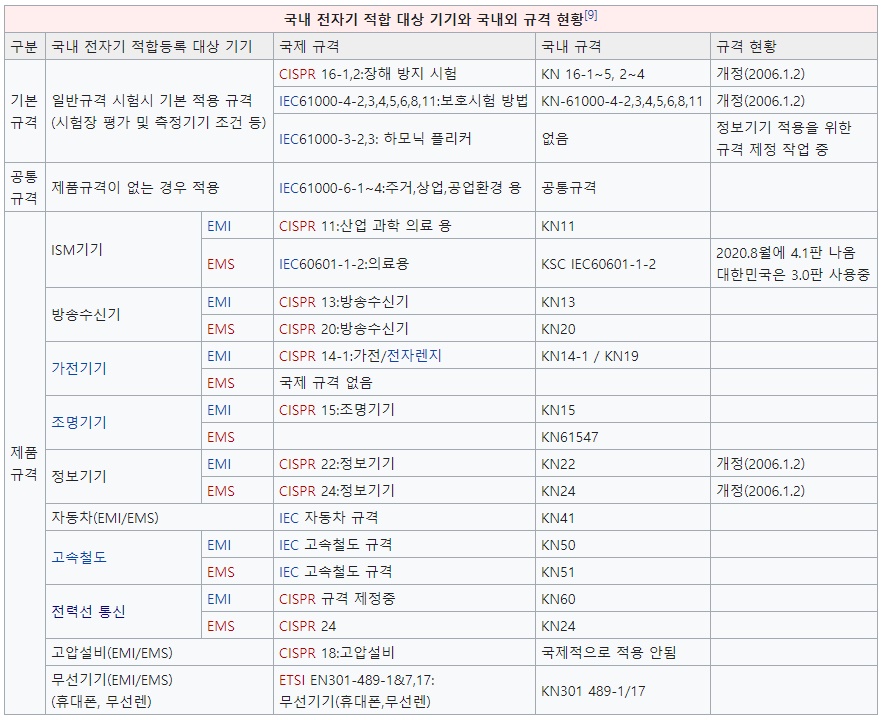 * 전자파 적합 대상 기기의 국제 규격에 대응하는 국내 규격