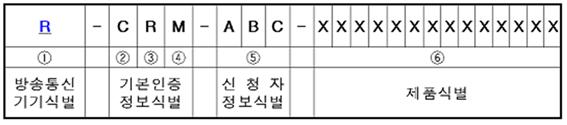 * ①란에는 전파법에 따른 방송통신기자재 등의 적합성평가를 의미하는 ‘R’을 기재한다.