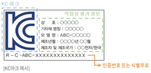 적합성평가 표시는 KC마크, 인증번호(식별부호), 적합성평가정보로 구성됩니다.