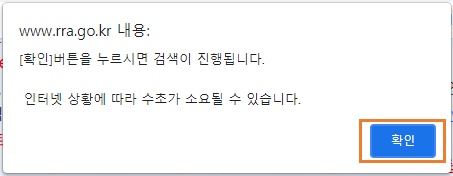 검색을 클릭하면 팝업창이 뜨는데 “확인”을 클릭해주어야 한다.