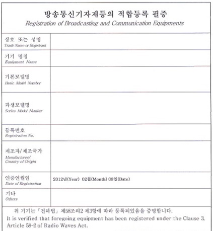 * 적합인증서 또는 적합등록필증에 기재된 내용이 변경되지 않는 경우에는 적합인증서 또는 적합등록필증의 제출을 생략