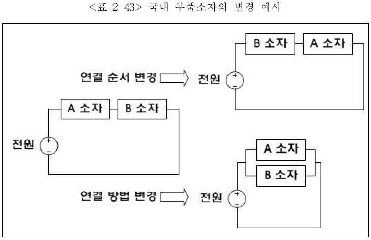 두 개 이상의 소자 연결 시 연결 순서의 변경 또는 연결방법(직렬 또는 병렬) 변경을 모두 포함한다.