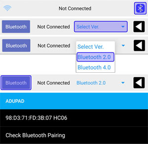 Click the Bluetooth icon in the app and select Bluetooth 2.0 in Select Ver.