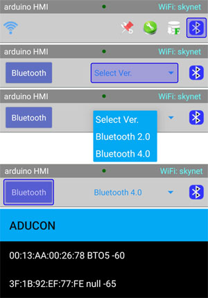 Click the Bluetooth icon in the app and select Bluetooth 4.0 in Select Ver.
