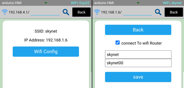 - Input the address "192.168.4.1" on ADUCON app connected to ESP32.