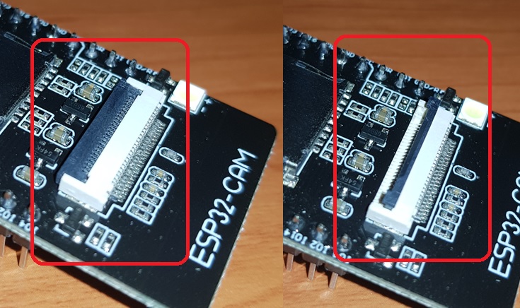 카메라의 리본 케이블을 슬롯에 넣은 뒤 클립을 눌러서 닫으면 됩니다.