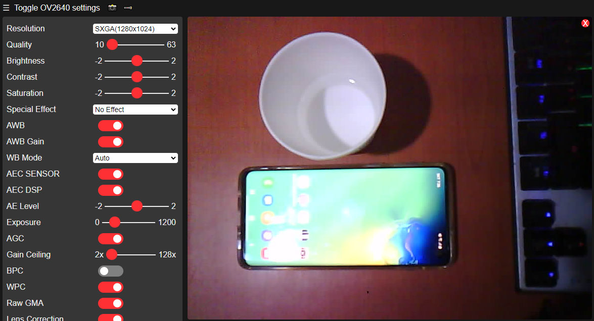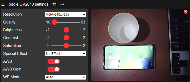 ▶ Toggle OV2640 settings 웹페이지용 GZIP 압축 데이터 풀기