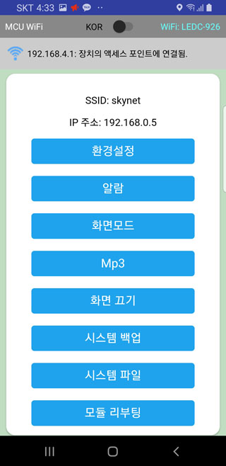 아두이노 서버(인터넷 연결 확실치 않음)의 선택이 완료되면 스마트폰 하단의 뒤로 가기 버튼을 클릭합니다.