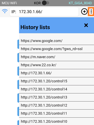 아두이노 웹서버에 정상적으로 연결된 경우에는 연결 방식 및 주소값이 저장되고 앱 종료 후 재 실행 시 저장된 값이 반영되어 빠르게 아두이노 html 페이이지에 연결할 수 있게 됩니다.