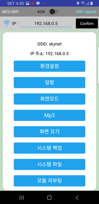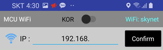 5-1. 스마트폰이 와이파이 공유기에 연결된 경우 표시되는 아이피 주소 입력창에 아두이노 서버의 주소를 입력하고 "Confirm"을 클릭합니다.