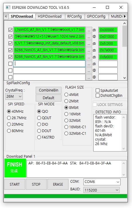 ESP-01의 기본 baud rate는 115200이다. 현재 상태의 작동 여부를 확인하기 위해 하드웨어와 소프트웨어 시리얼 baud rate를 둘 다 115200으로 맞추어 주었다. 115200으로 해놓아도 AT command의 사용에는 지장이 없다.