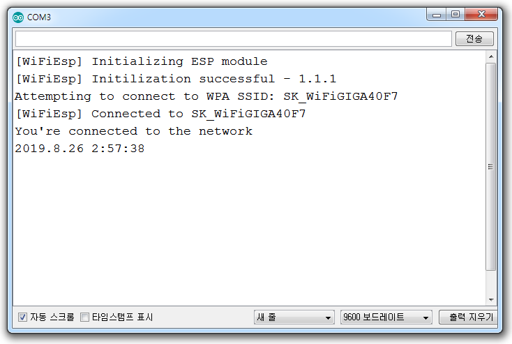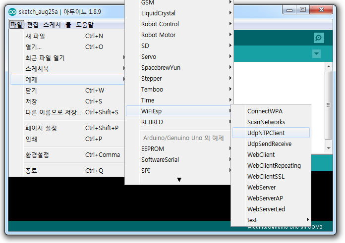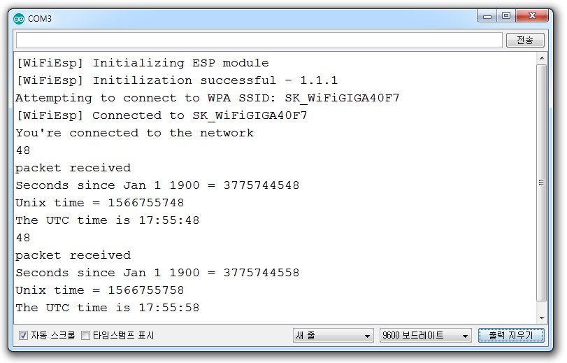 [arduino] - 아두이노시계 예제, ESP01 WiFi 이용 시간 동기화 하기