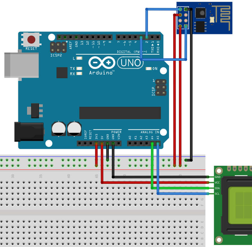 아두이노에서 SDA핀은 A4핀, SCL핀은 A5번 핀이다. 아래 그림처럼 연결해주면 된다.