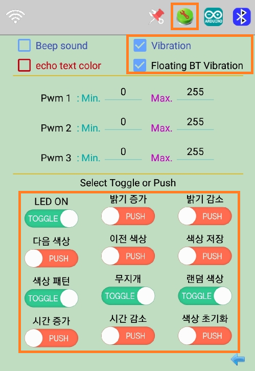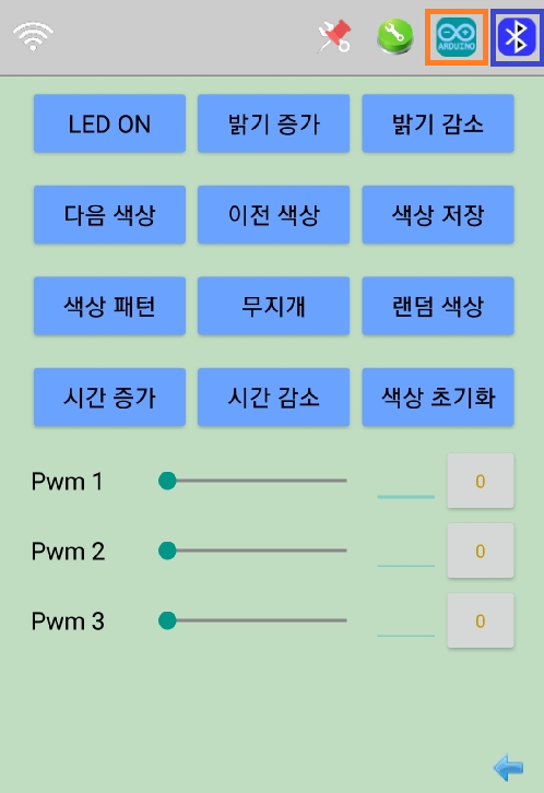2-3. 블루투스 연결 시 무지개 패턴 모드 일 경우 "무지개" 버튼에 상태 반영
