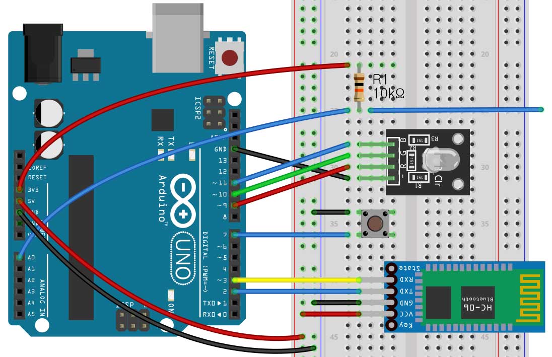 아두이노에 블루투스 2.0 모듈(HC-06) 또는 4.0 BLE 모듈(AT-09 등)을 연결하고 안드로이드 앱 arduino bluetooth controller PWM v3.5를 이용하여 이전 글 아두이노 - 무드등 예제, RGB LED 제어에서 구현했던 무드등을 스마트폰에서 원격 제어해보도록 하겠다.