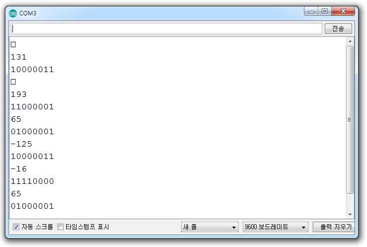 Serial.println(temp3); // 자료형이 char가 아니므로 음수 출력 -125