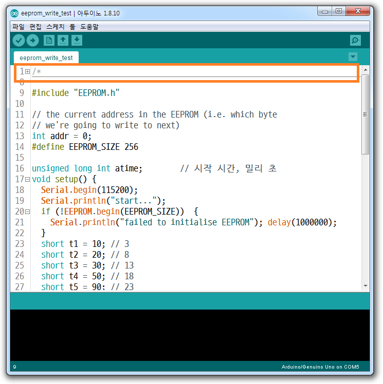 # 스케치 에디터 화면에서 라인의 번호를 표시한다.