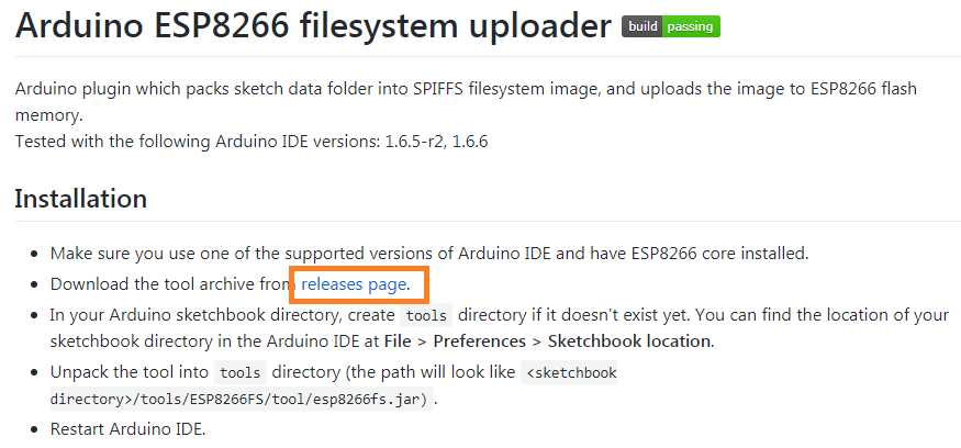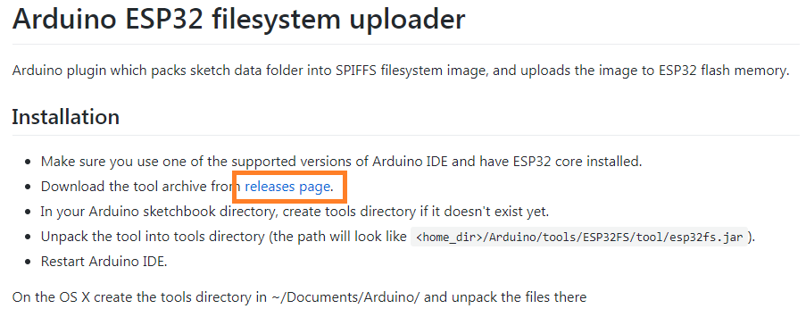 이미 파일 형태로 저장된 데이터를 스케치 컴파일전에 SPIFFS파일 시스템에 업로드 시키기 위해서는 아두이노 IDE에 플러그인 형태로 설치되는 프로그램을 사용하여야 한다. 플러그인 설치에 관해서는 이글의 말미에 언급하겠다.