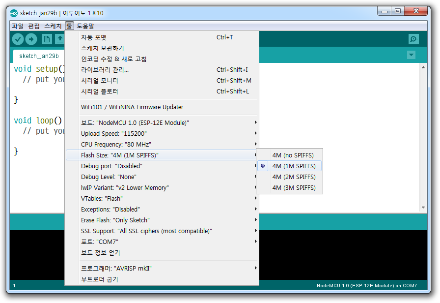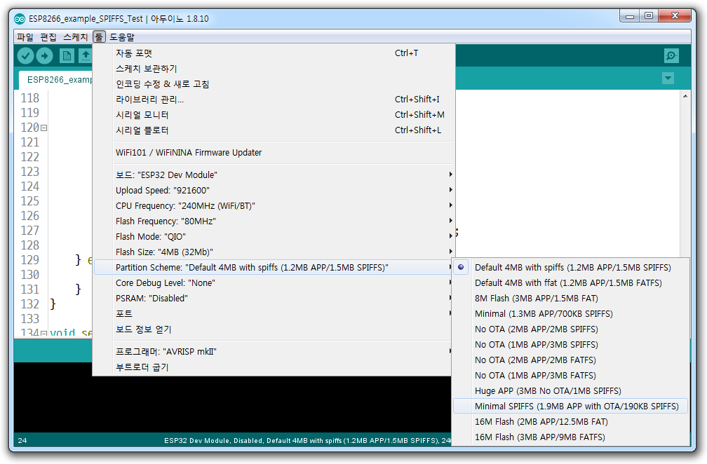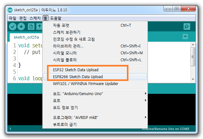 아두이노 IDE에서 SPIFFS 파일시스템 설정 하기