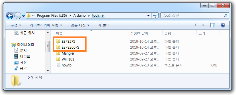 SPIFFS 라이브러리 명칭