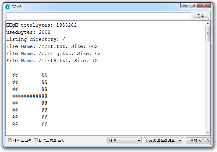 for (int i = 0; i < f.size(); i++) Serial.print(char(f.read())); // 폰트 문자값 시리얼 모니터 출력